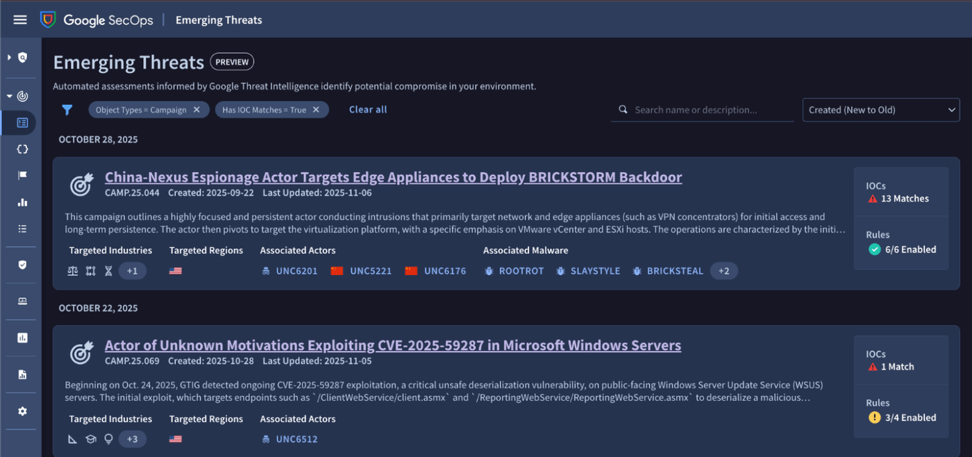 Để giải quyết vấn đề này, Google Cloud Emerging Threats Center sẽ tự động sàng lọc lượng lớn dữ liệu tình báo, hệ thống giúp doanh nghiệp nhận diện và ưu tiên các chiến dịch tấn công có rủi ro cao nhất đối với môi trường cụ thể của họ. Thay vì bị quá tải bởi các cảnh báo rác, đội ngũ IT sẽ có một cái nhìn tổng quan, tích hợp sẵn các chỉ số IoC và các quy tắc phát hiện, từ đó đưa ra các quyết định ngăn chặn chính xác và kịp thời.