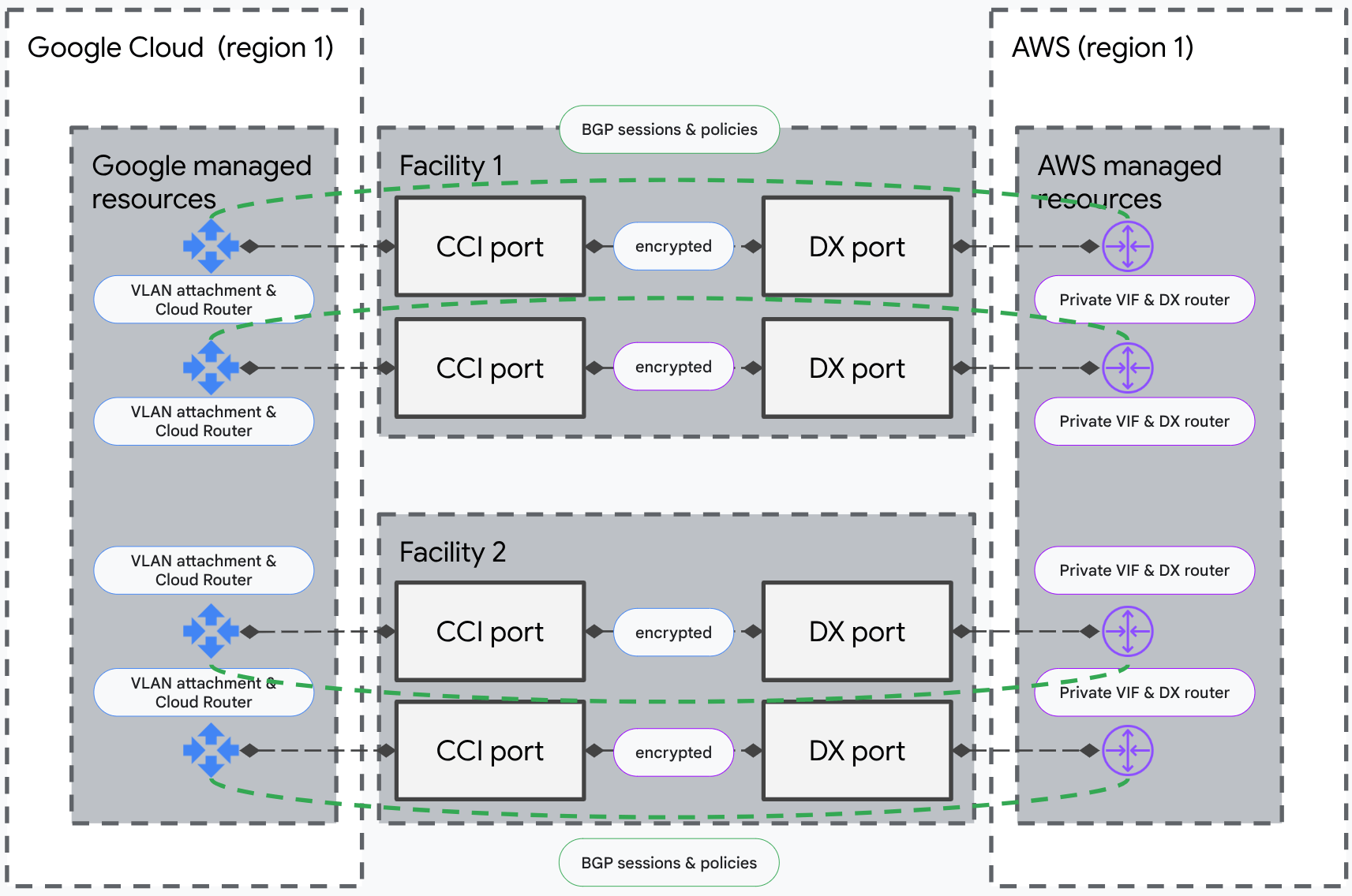 🔹Bảo mật mặc định: An toàn dữ liệu được ưu tiên hàng đầu. Tất cả kết nối giữa các edge router của hai đám mây đều được mã hóa bằng MACsec, đảm bảo hiệu suất cao với cơ chế mã hóa luôn bật, tạo nền tảng bảo mật vững chắc.